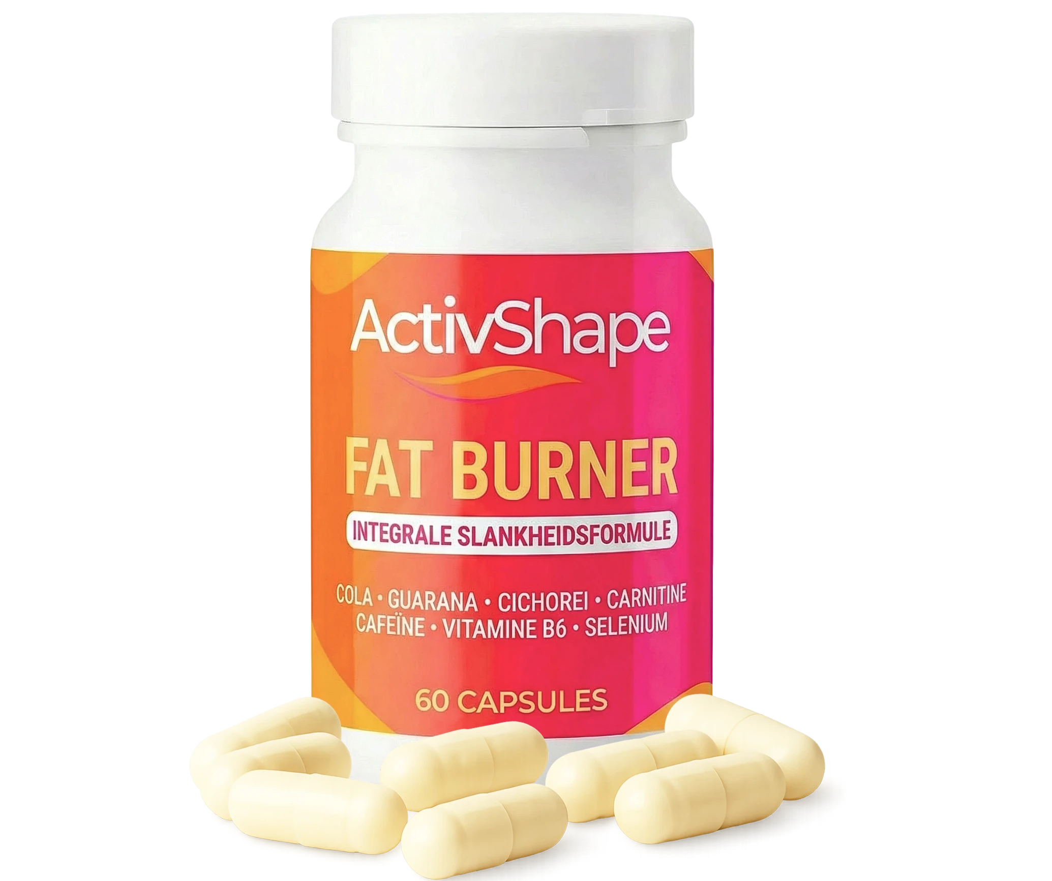 ActivShape® Fat Burner is een voedingssupplement op basis van cola, guarana, cichorei, carnitine, cafeïne, vitamine B6 en selenium, bedoeld om de thermogenese te ondersteunen, helpen vet te verbranden, de eetlust te verminderen en natuurlijk energie te geven.